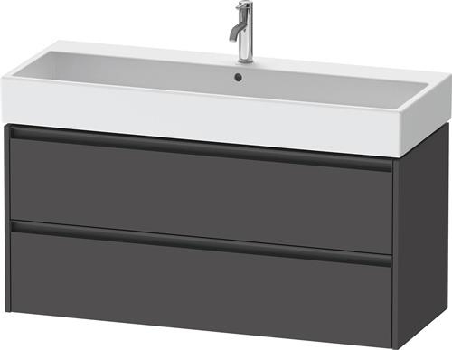 Duravit Ketho.2 Waschtischunterbau wandhängend · 1184x460 mm · Farbe Front: Graphit Matt · Farbe Korpus: Graphit Matt · Farbe Griff: Anthrazit Matt · Anzahl Schubkasten: 2 · Siphonausschnitt - K25279049490000