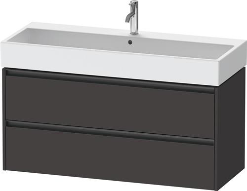 Duravit Ketho.2 Waschtischunterbau wandhängend · 1184x460 mm · Farbe Front: Graphit Supermatt · Farbe Korpus: Graphit Supermatt · Farbe Griff: Anthrazit Matt · Anzahl Schubkasten: 2 · Siphonausschnitt - K25279080800000