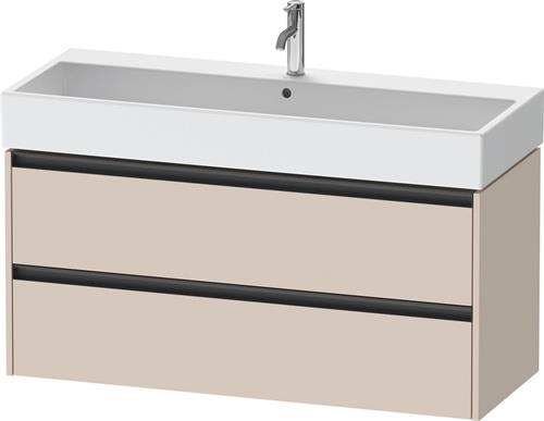 Duravit Ketho.2 Waschtischunterbau wandhängend · 1184x460 mm · Farbe Front: Taupe Supermatt · Farbe Korpus: Taupe Supermatt · Farbe Griff: Anthrazit Matt · Anzahl Schubkasten: 2 · Siphonausschnitt - K25279083830000