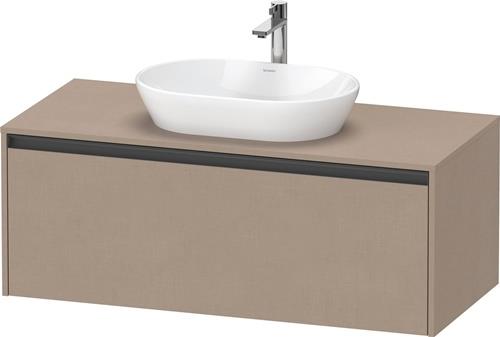 Duravit Ketho.2 Konsolenwaschtischunterbau wandhängend · 1200x550 mm · Farbe Front: Leinen Matt · Farbe Korpus: Leinen Matt · Farbe Griff: Anthrazit Matt · Anzahl Auszüge: 1 · Anzahl Ausschnitte: 1 · Inkl. Konsolenplatte - K24887075750000