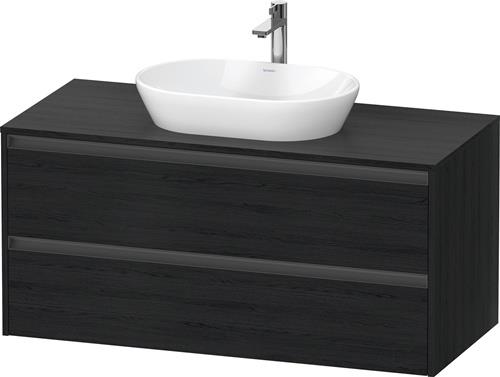 Duravit Ketho.2 Konsolenwaschtischunterbau wandhängend · 1200x550 mm · Farbe Front: Eiche (Schwarz) Matt · Farbe Korpus: Eiche (Schwarz) Matt · Farbe Griff: Anthrazit Matt · Anzahl Schubkasten: 2 · Anzahl Ausschnitte: 1 · Siphonausschnitt · Inkl. Konsolenplatte -
