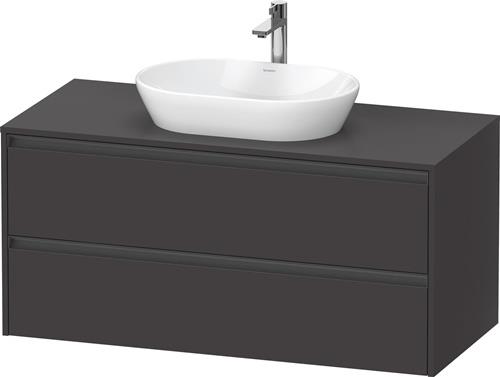 Duravit Ketho.2 Konsolenwaschtischunterbau wandhängend · 1200x550 mm · Farbe Front: Graphit Supermatt · Farbe Korpus: Graphit Supermatt · Farbe Griff: Anthrazit Matt · Anzahl Schubkasten: 2 · Anzahl Ausschnitte: 1 · Siphonausschnitt · Inkl. Konsolenplatte - K2489