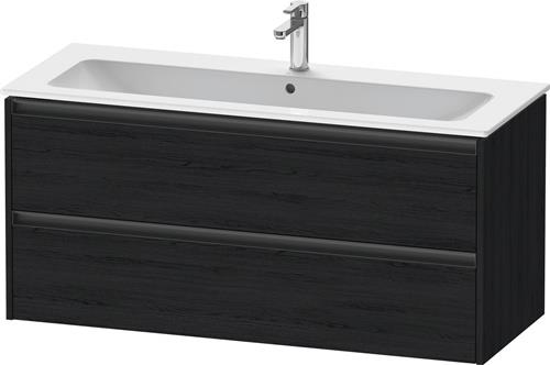 Duravit Ketho.2 Waschtischunterbau wandhängend · 1210x480 mm · Farbe Front: Eiche (Schwarz) Matt · Farbe Korpus: Eiche (Schwarz) Matt · Farbe Griff: Anthrazit Matt · Anzahl Schubkasten: 2 · Siphonausschnitt - K25265016160000