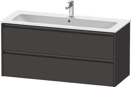 Duravit Ketho.2 Waschtischunterbau wandhängend · 1210x480 mm · Farbe Front: Graphit Supermatt · Farbe Korpus: Graphit Supermatt · Farbe Griff: Anthrazit Matt · Anzahl Schubkasten: 2 · Siphonausschnitt - K25265080800000