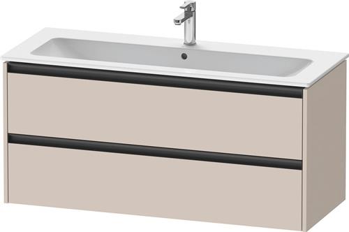 Duravit Ketho.2 Waschtischunterbau wandhängend · 1210x480 mm · Farbe Front: Taupe Matt · Farbe Korpus: Taupe Matt · Farbe Griff: Anthrazit Matt · Anzahl Schubkasten: 2 · Siphonausschnitt - K25265091910000