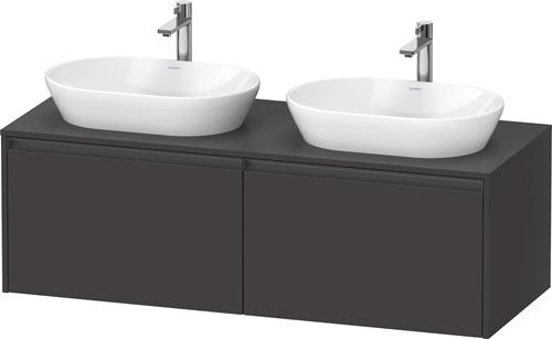 Duravit Ketho.2 Konsolenwaschtischunterbau wandhängend · 1400x550 mm · Farbe Front: Graphit Supermatt · Farbe Korpus: Graphit Supermatt · Farbe Griff: Anthrazit Matt · Anzahl Auszüge: 2 · Anzahl Ausschnitte: 2 · Inkl. Konsolenplatte - K24888B80800000