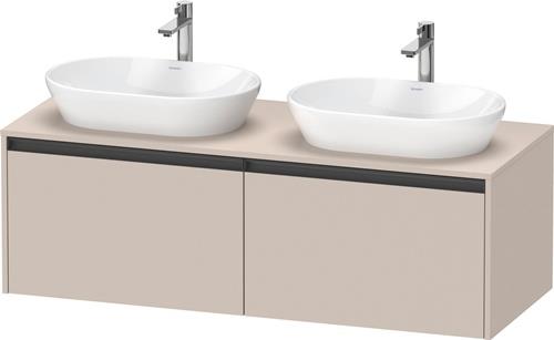 Duravit Ketho.2 Konsolenwaschtischunterbau wandhängend · 1400x550 mm · Farbe Front: Taupe Matt · Farbe Korpus: Taupe Matt · Farbe Griff: Anthrazit Matt · Anzahl Auszüge: 2 · Anzahl Ausschnitte: 2 · Inkl. Konsolenplatte - K24888B91910000