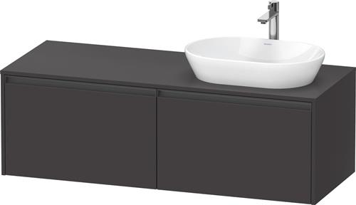 Duravit Ketho.2 Konsolenwaschtischunterbau wandhängend · 1400x550 mm · Farbe Front: Graphit Supermatt · Farbe Korpus: Graphit Supermatt · Farbe Griff: Anthrazit Matt · Anzahl Auszüge: 2 · Anzahl Ausschnitte: 1 · Inkl. Konsolenplatte - K24888R80800000