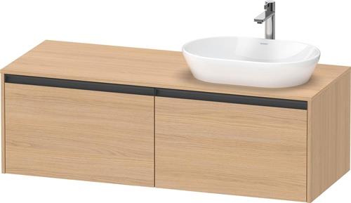 Duravit Ketho.2 Konsolenwaschtischunterbau wandhängend · 1400x550 mm · Farbe Front: Natur Eiche Matt · Farbe Korpus: Natur Eiche Matt · Farbe Griff: Anthrazit Matt · Anzahl Auszüge: 2 · Anzahl Ausschnitte: 1 · Inkl. Konsolenplatte - K24888R30300000