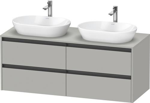 Duravit Ketho.2 Konsolenwaschtischunterbau wandhängend · 1400x550 mm · Farbe Front: Betongrau Matt · Farbe Korpus: Betongrau Matt · Farbe Griff: Anthrazit Matt · Anzahl Schubkasten: 4 · Anzahl Ausschnitte: 2 · Siphonausschnitt · Inkl. Konsolenplatte - K24898B0707