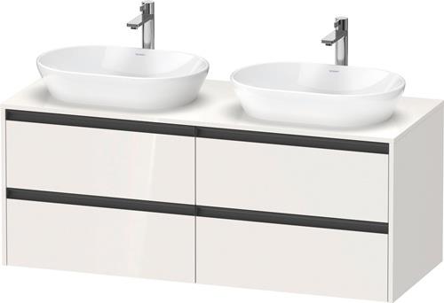 Duravit Ketho.2 Konsolenwaschtischunterbau wandhängend · 1400x550 mm · Farbe Front: Taupe Supermatt · Farbe Korpus: Taupe Supermatt · Farbe Griff: Anthrazit Matt · Anzahl Schubkasten: 4 · Anzahl Ausschnitte: 1 · Siphonausschnitt · Inkl. Konsolenplatte - K24898L83