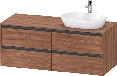 Duravit Ketho.2 Konsolenwaschtischunterbau wandhängend · 1400x550 mm · Farbe Front: Nussbaum Matt · Farbe Korpus: Nussbaum Matt · Farbe Griff: Anthrazit Matt · Anzahl Schubkasten: 4 · Anzahl Ausschnitte: 1 · Siphonausschnitt · Inkl. Konsolenplatte - K24898R797900