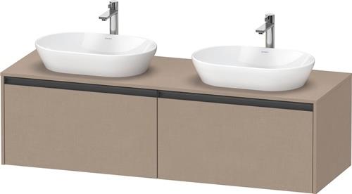 Duravit Ketho.2 Konsolenwaschtischunterbau wandhängend · 1600x550 mm · Farbe Front: Leinen Matt · Farbe Korpus: Leinen Matt · Farbe Griff: Anthrazit Matt · Anzahl Auszüge: 2 · Anzahl Ausschnitte: 2 · Inkl. Konsolenplatte - K24889B75750000