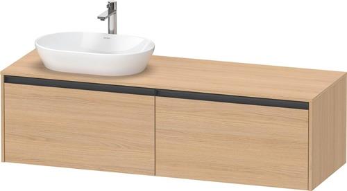 Duravit Ketho.2 Konsolenwaschtischunterbau wandhängend · 1600x550 mm · Farbe Front: Natur Eiche Matt · Farbe Korpus: Natur Eiche Matt · Farbe Griff: Anthrazit Matt · Anzahl Auszüge: 2 · Anzahl Ausschnitte: 1 · Inkl. Konsolenplatte - K24889L30300000