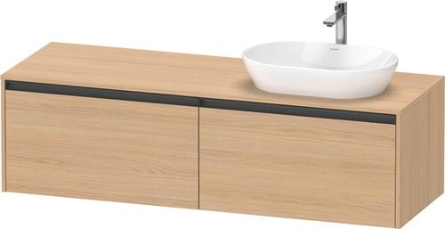 Duravit Ketho.2 Konsolenwaschtischunterbau wandhängend · 1600x550 mm · Farbe Front: Natur Eiche Matt · Farbe Korpus: Natur Eiche Matt · Farbe Griff: Anthrazit Matt · Anzahl Auszüge: 2 · Anzahl Ausschnitte: 1 · Inkl. Konsolenplatte - K24889R30300000