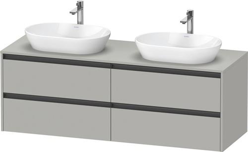 Duravit Ketho.2 Konsolenwaschtischunterbau wandhängend · 1600x550 mm · Farbe Front: Betongrau Matt · Farbe Korpus: Betongrau Matt · Farbe Griff: Anthrazit Matt · Anzahl Schubkasten: 4 · Anzahl Ausschnitte: 2 · Siphonausschnitt · Inkl. Konsolenplatte - K24899B0707
