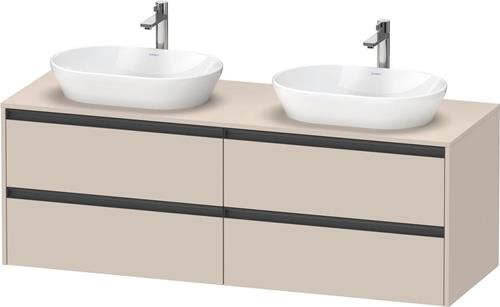 Duravit Ketho.2 Konsolenwaschtischunterbau wandhängend · 1600x550 mm · Farbe Front: Taupe Supermatt · Farbe Korpus: Taupe Supermatt · Farbe Griff: Anthrazit Matt · Anzahl Schubkasten: 4 · Anzahl Ausschnitte: 2 · Siphonausschnitt · Inkl. Konsolenplatte - K24899B83