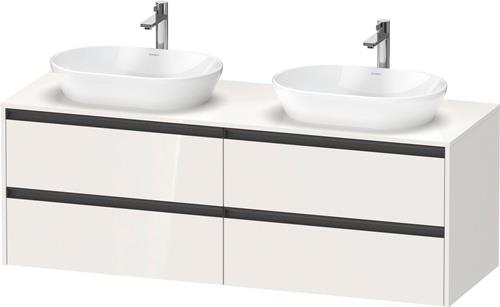 Duravit Ketho.2 Konsolenwaschtischunterbau wandhängend · 1600x550 mm · Farbe Front: Taupe Supermatt · Farbe Korpus: Taupe Supermatt · Farbe Griff: Anthrazit Matt · Anzahl Schubkasten: 4 · Anzahl Ausschnitte: 1 · Siphonausschnitt · Inkl. Konsolenplatte - K24899L83