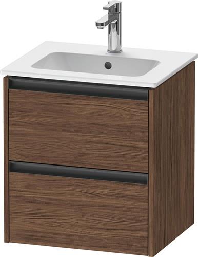 Duravit Ketho.2 Waschtischunterbau wandhängend · 510x420 mm · Farbe Front: Nussbaum (dunkel) Matt · Farbe Korpus: Nussbaum (dunkel) Matt · Farbe Griff: Anthrazit Matt · Anzahl Schubkasten: 2 · Siphonausschnitt - K25261021210000