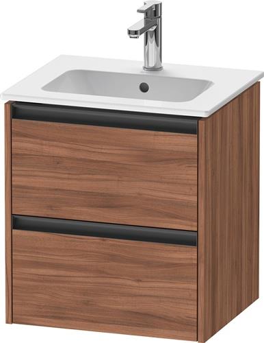 Duravit Ketho.2 Waschtischunterbau wandhängend · 510x420 mm · Farbe Front: Nussbaum Matt · Farbe Korpus: Nussbaum Matt · Farbe Griff: Anthrazit Matt · Anzahl Schubkasten: 2 · Siphonausschnitt - K25261079790000