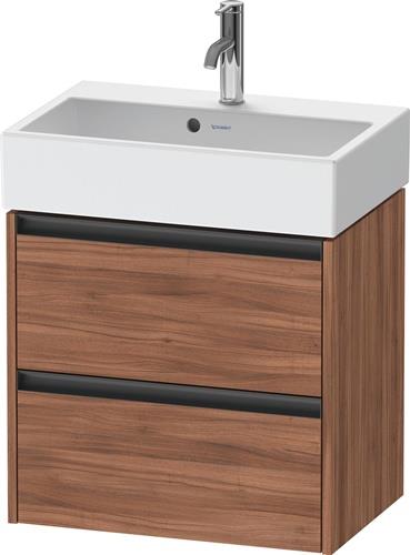 Duravit Ketho.2 Waschtischunterbau wandhängend · 584x390 mm · Farbe Front: Nussbaum Matt · Farbe Korpus: Nussbaum Matt · Farbe Griff: Anthrazit Matt · Anzahl Schubkasten: 2 · Siphonausschnitt - K25273079790000