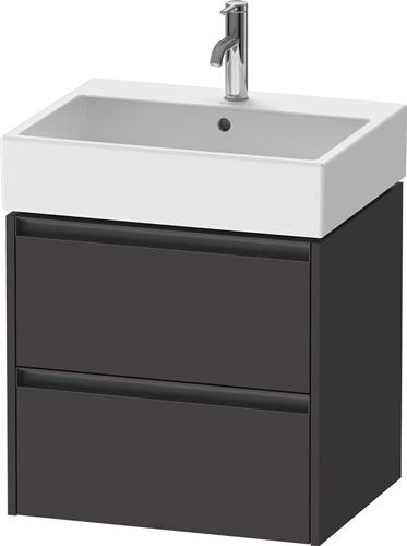 Duravit Ketho.2 Waschtischunterbau wandhängend · 584x460 mm · Farbe Front: Graphit Supermatt · Farbe Korpus: Graphit Supermatt · Farbe Griff: Anthrazit Matt · Anzahl Schubkasten: 2 · Siphonausschnitt - K25275080800000