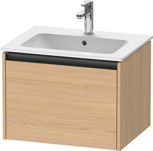 Duravit Ketho.2 Waschtischunterbau wandhängend · 610x480 mm · Farbe Front: Natur Eiche Matt · Farbe Korpus: Natur Eiche Matt · Farbe Griff: Anthrazit Matt · Anzahl Auszüge: 1 - K25062030300000