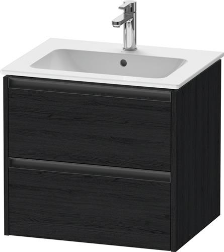 Duravit Ketho.2 Waschtischunterbau wandhängend · 610x480 mm · Farbe Front: Eiche (Schwarz) Matt · Farbe Korpus: Eiche (Schwarz) Matt · Farbe Griff: Anthrazit Matt · Anzahl Schubkasten: 2 · Siphonausschnitt - K25262016160000