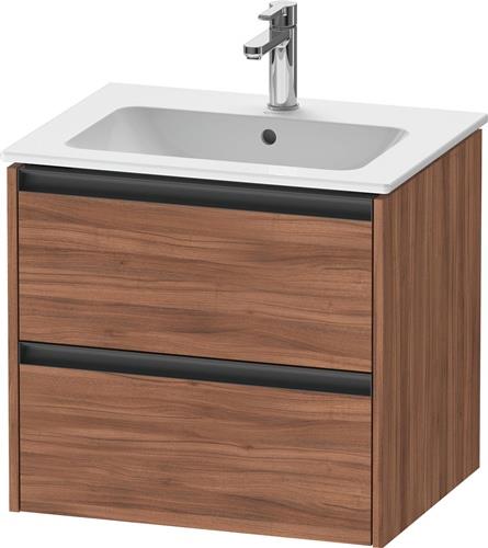 Duravit Ketho.2 Waschtischunterbau wandhängend · 610x480 mm · Farbe Front: Nussbaum Matt · Farbe Korpus: Nussbaum Matt · Farbe Griff: Anthrazit Matt · Anzahl Schubkasten: 2 · Siphonausschnitt - K25262079790000