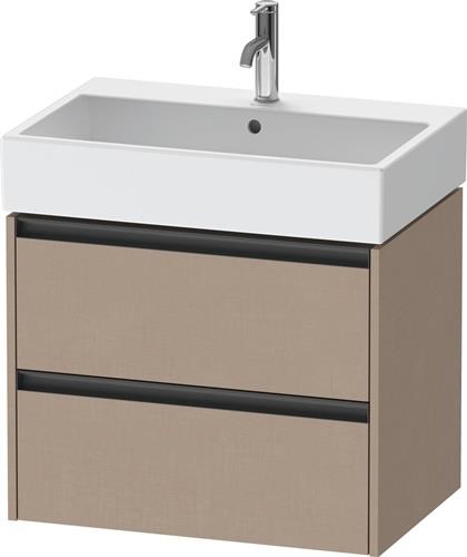 Duravit Ketho.2 Waschtischunterbau wandhängend · 684x460 mm · Farbe Front: Leinen Matt · Farbe Korpus: Leinen Matt · Farbe Griff: Anthrazit Matt · Anzahl Schubkasten: 2 · Siphonausschnitt - K25276075750000