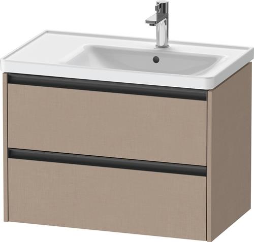 Duravit Ketho.2 Waschtischunterbau wandhängend · 784x455 mm · Farbe Front: Leinen Matt · Farbe Korpus: Leinen Matt · Farbe Griff: Anthrazit Matt · Anzahl Schubkasten: 2 · Siphonausschnitt - K25286075750000