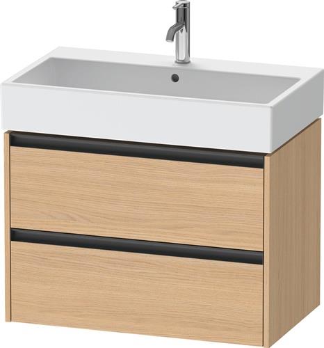 Duravit Ketho.2 Waschtischunterbau wandhängend · 784x460 mm · Farbe Front: Natur Eiche Matt · Farbe Korpus: Natur Eiche Matt · Farbe Griff: Anthrazit Matt · Anzahl Schubkasten: 2 · Siphonausschnitt - K25277030300000