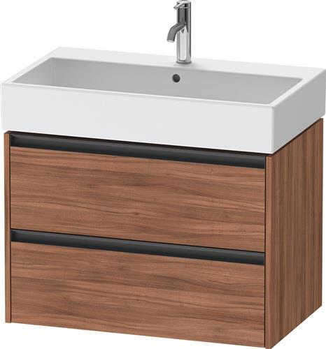Duravit Ketho.2 Waschtischunterbau wandhängend · 784x460 mm · Farbe Front: Nussbaum Matt · Farbe Korpus: Nussbaum Matt · Farbe Griff: Anthrazit Matt · Anzahl Schubkasten: 2 · Siphonausschnitt - K25277079790000