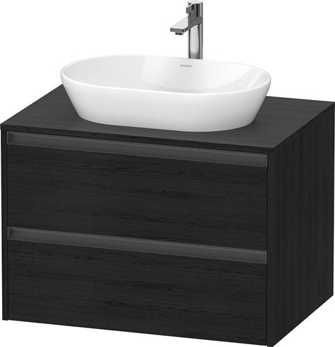Duravit Ketho.2 Konsolenwaschtischunterbau wandhängend · 800x550 mm · Farbe Front: Eiche (Schwarz) Matt · Farbe Korpus: Eiche (Schwarz) Matt · Farbe Griff: Anthrazit Matt · Anzahl Schubkasten: 2 · Anzahl Ausschnitte: 1 · Siphonausschnitt · Inkl. Konsolenplatte -