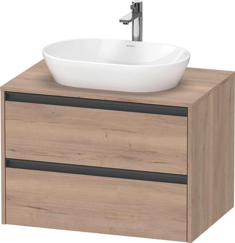 Duravit Ketho.2 Konsolenwaschtischunterbau wandhängend · 800x550 mm · Farbe Front: Nussbaum Matt · Farbe Korpus: Nussbaum Matt · Farbe Griff: Anthrazit Matt · Anzahl Schubkasten: 2 · Anzahl Ausschnitte: 1 · Siphonausschnitt · Inkl. Konsolenplatte - K2489507979000