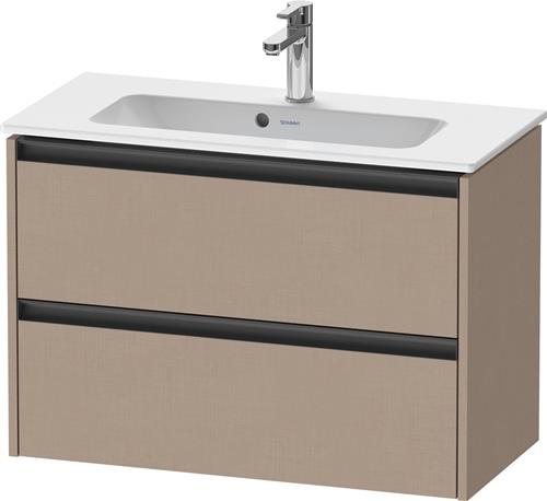 Duravit Ketho.2 Waschtischunterbau wandhängend · 810x390 mm · Farbe Front: Leinen Matt · Farbe Korpus: Leinen Matt · Farbe Griff: Anthrazit Matt · Anzahl Schubkasten: 2 · Siphonausschnitt - K25256075750000