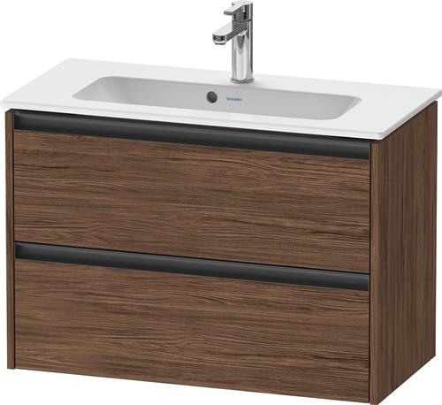 Duravit Ketho.2 Waschtischunterbau wandhängend · 810x390 mm · Farbe Front: Nussbaum (dunkel) Matt · Farbe Korpus: Nussbaum (dunkel) Matt · Farbe Griff: Anthrazit Matt · Anzahl Schubkasten: 2 · Siphonausschnitt - K25256021210000