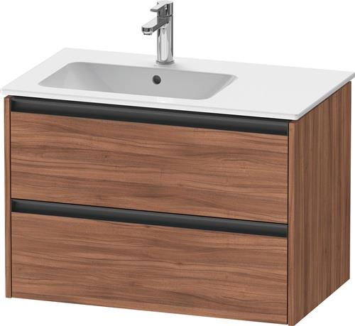 Duravit Ketho.2 Waschtischunterbau wandhängend · 810x480 mm · Farbe Front: Nussbaum Matt · Farbe Korpus: Nussbaum Matt · Farbe Griff: Anthrazit Matt · Anzahl Schubkasten: 2 · Siphonausschnitt - K25267079790000