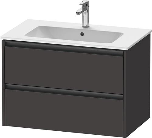 Duravit Ketho.2 Waschtischunterbau wandhängend · 810x480 mm · Farbe Front: Graphit Supermatt · Farbe Korpus: Graphit Supermatt · Farbe Griff: Anthrazit Matt · Anzahl Schubkasten: 2 · Siphonausschnitt - K25263080800000