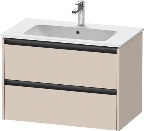 Duravit Ketho.2 Waschtischunterbau wandhängend · 810x480 mm · Farbe Front: Taupe Supermatt · Farbe Korpus: Taupe Supermatt · Farbe Griff: Anthrazit Matt · Anzahl Schubkasten: 2 · Siphonausschnitt - K25263083830000