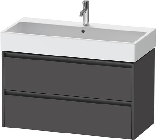 Duravit Ketho.2 Waschtischunterbau wandhängend · 984x460 mm · Farbe Front: Graphit Matt · Farbe Korpus: Graphit Matt · Farbe Griff: Anthrazit Matt · Anzahl Schubkasten: 2 · Siphonausschnitt - K25278049490000