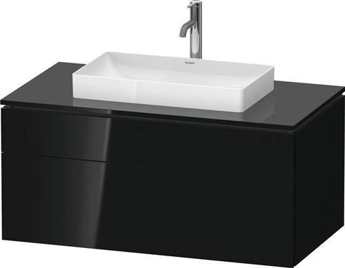Duravit L-Cube Konsolenwaschtischunterbau wandhängend · 1000x550 mm · Farbe Front: Schwarz Hochglanz · Farbe Korpus: Schwarz Hochglanz · Anzahl Auszüge: 1 · Anzahl Schubkasten: 1 · Anzahl Ausschnitte: 1 · Siphonausschnitt · Inkl. Konsolenplatte · Tip-on Technik -
