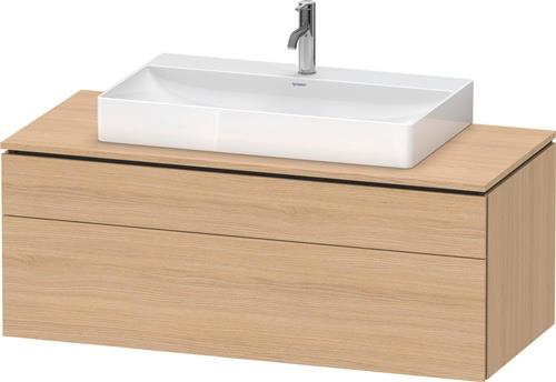 Duravit L-Cube Konsolenwaschtischunterbau wandhängend · 1200x550 mm · Farbe Front: Natur Eiche Matt · Farbe Korpus: Natur Eiche Matt · Anzahl Auszüge: 1 · Anzahl Schubkasten: 1 · Anzahl Ausschnitte: 1 · Siphonausschnitt · Inkl. Konsolenplatte · Tip-on Technik - LC
