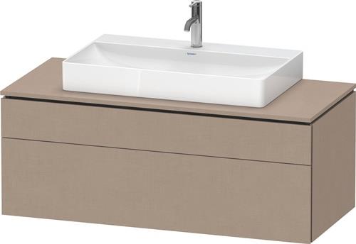 Duravit L-Cube Konsolenwaschtischunterbau wandhängend · 1200x550 mm · Farbe Front: Leinen Matt · Farbe Korpus: Leinen Matt · Anzahl Auszüge: 1 · Anzahl Schubkasten: 1 · Anzahl Ausschnitte: 1 · Siphonausschnitt · Inkl. Konsolenplatte · Tip-on Technik - LC4882075750