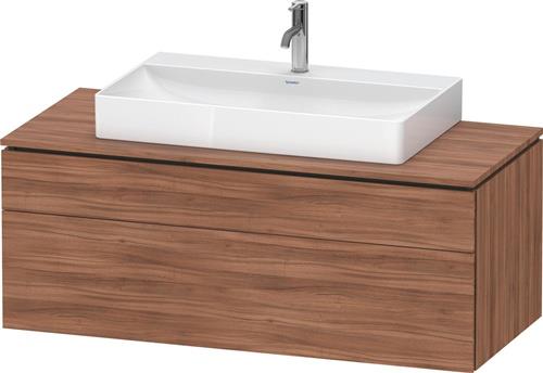 Duravit L-Cube Konsolenwaschtischunterbau wandhängend · 1200x550 mm · Farbe Front: Nussbaum Matt · Farbe Korpus: Nussbaum Matt · Anzahl Auszüge: 1 · Anzahl Schubkasten: 1 · Anzahl Ausschnitte: 1 · Siphonausschnitt · Inkl. Konsolenplatte · Tip-on Technik - LC488207