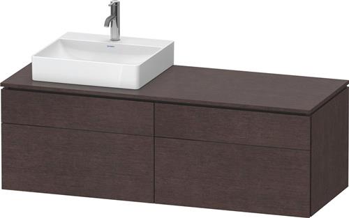 Duravit L-Cube Konsolenwaschtischunterbau wandhängend · 1400x550 mm · Farbe Front: Eiche (dunkel gebürstet) Matt · Farbe Korpus: Eiche (dunkel gebürstet) Matt · Anzahl Auszüge: 2 · Anzahl Schubkasten: 2 · Anzahl Ausschnitte: 1 · Siphonausschnitt · Inkl. Konsolenp