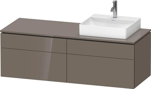 Duravit L-Cube Konsolenwaschtischunterbau wandhängend · 1400x550 mm · Farbe Front: Flanell Grau Hochglanz · Farbe Korpus: Flanell Grau Hochglanz · Anzahl Auszüge: 2 · Anzahl Schubkasten: 2 · Anzahl Ausschnitte: 1 · Siphonausschnitt · Inkl. Konsolenplatte · Tip-on
