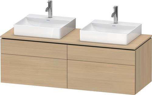 Duravit L-Cube Konsolenwaschtischunterbau wandhängend · 1400x550 mm · Farbe Front: Mediterrane Eiche Matt · Farbe Korpus: Mediterrane Eiche Matt · Anzahl Auszüge: 2 · Anzahl Schubkasten: 2 · Anzahl Ausschnitte: 2 · Siphonausschnitt · Inkl. Konsolenplatte · Tip-on