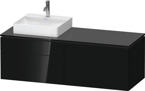 Duravit L-Cube Konsolenwaschtischunterbau wandhängend · 1400x550 mm · Farbe Front: Schwarz Hochglanz · Farbe Korpus: Schwarz Hochglanz · Anzahl Auszüge: 2 · Anzahl Schubkasten: 2 · Anzahl Ausschnitte: 1 · Siphonausschnitt · Inkl. Konsolenplatte · Tip-on Technik -