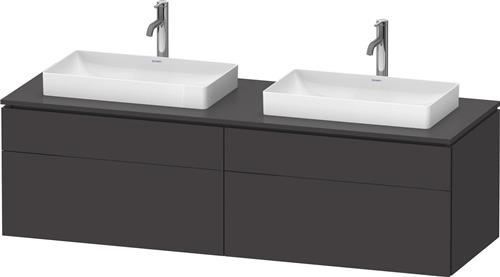 Duravit L-Cube Konsolenwaschtischunterbau wandhängend · 1600x550 mm · Farbe Front: Graphit Supermatt · Farbe Korpus: Graphit Supermatt · Anzahl Auszüge: 2 · Anzahl Schubkasten: 2 · Anzahl Ausschnitte: 2 · Siphonausschnitt · Inkl. Konsolenplatte · Tip-on Technik -